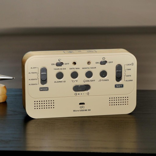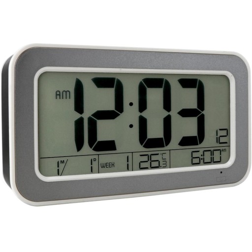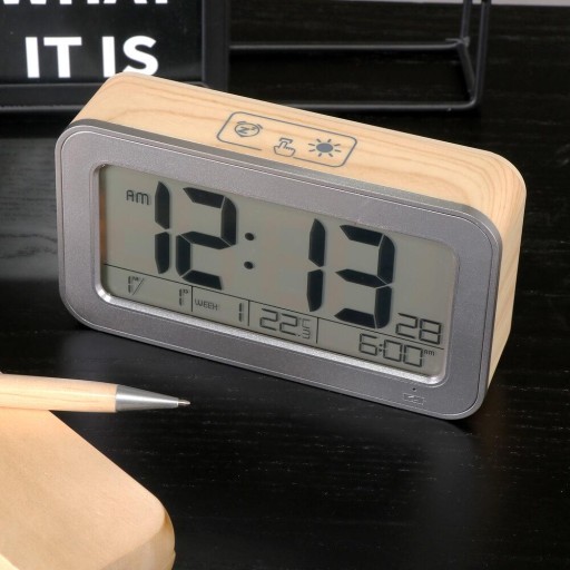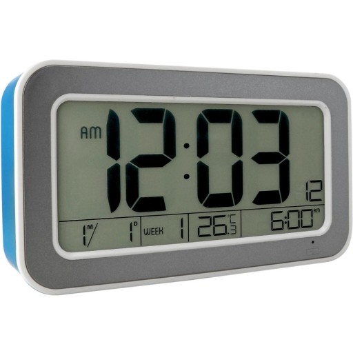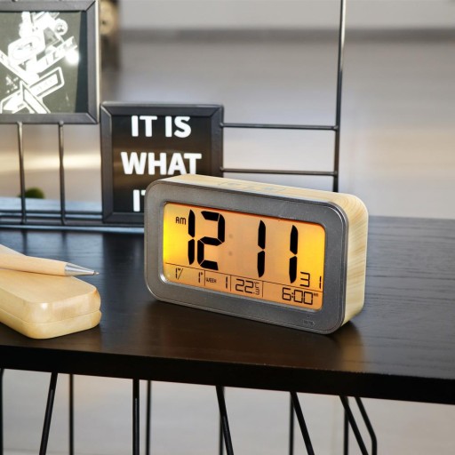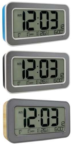 Budzik oprócz doskonale czytelnego wyświetlacza posiada możliwość zmiany formatu czasu z 24 na 12 godzinny.