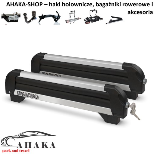 W asortymencie firmy MENABO znaleźć można m.in. boxy dachowe, bagażniki bazowe na relingi oraz uchwyty do przewozu na dachu samochodu nart, w tym także wysokiej klasy bagażniki magnetyczne.
