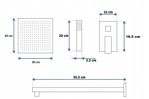 - Zestaw: Deszczownica + ramię + bateria + słuchawka +wąż