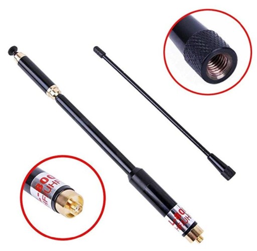 Antena przenośna teleskopowa VHF/UHF typu 2w1 (krótka i długa - 2 promienniki).