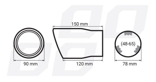 - Średnica montażowa: 48 - 65 mm z wykorzystaniem zacisków