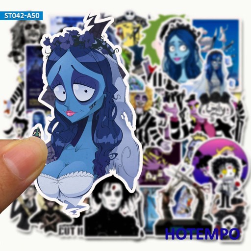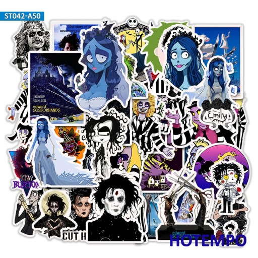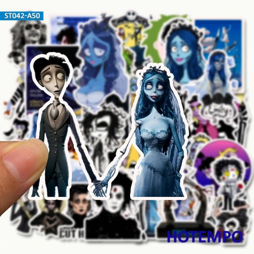 Naklejki w stylu filmów Tima Burtona - Edward Nożycoręki, Gnijąca Panna Młoda, Sok z żuka (Edward Scissorhands, Corpse Bride, Beetlejuice)