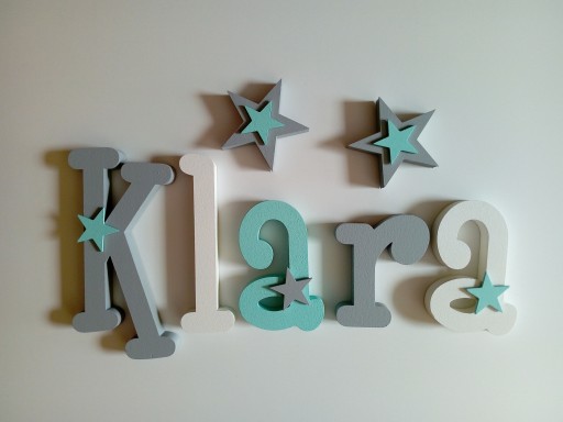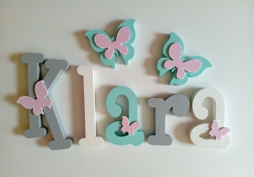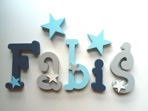 Przedmiotem sprzedaży są piękne ,ręcznie malowane i ozdabiane finezyjnymi dekorami z sklejki literki z, których możesz stworzyć imię twojego dziecka.