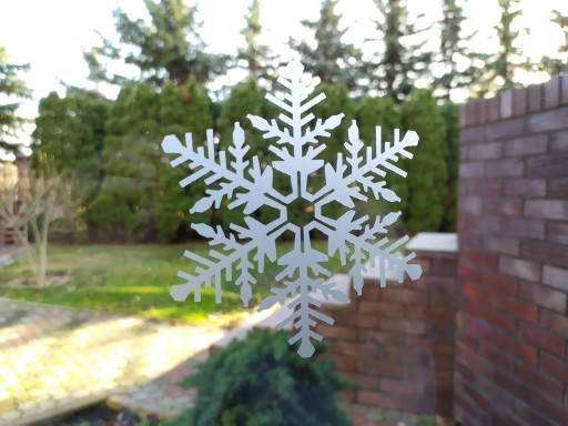 Naklejka jest wycięta z matowej folii samoprzylepnej imitującej oszronione szkło. Naklejki po umieszczeniu na szybie czy oknie bardzo ładnie rozpraszają światło, dając niespotykany efekt. Śnieżynka nie posiada tła, po naklejeniu pozostają tylko elementy śnieżynki.