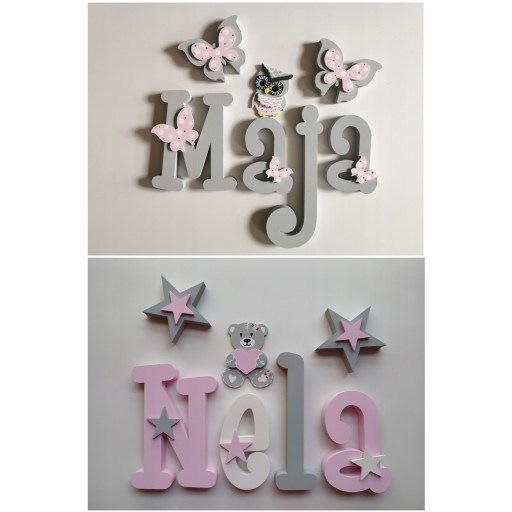 Przedmiotem sprzedaży są piękne ,ręcznie malowane i ozdabiane finezyjnymi dekorami z sklejki literki z, których możesz stworzyć imię twojego dziecka.