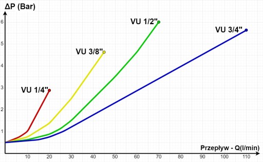Tabelka ciśnień przy których przepływ w naszych zaworach jest otwarty: