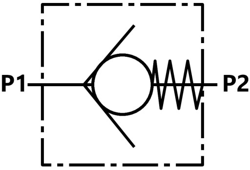 Przepływ przechodzi swobodnie od P1 do P2 natomiast zablokowany jest w przeciwnym kierunku.