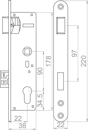 ЗАМОК ВРЕЗНЫЙ, ЗАЩЕЛКА, 90/22 мм
