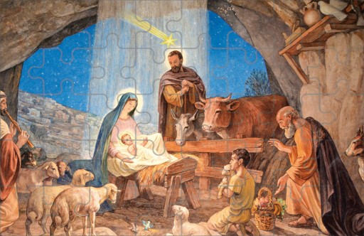Puzzle z Motywem Bożego narodzenia przedstawiające Narodziny Pana Jezusa w Betlejem . W sam raz na prezent dla waszych pociech pod choinkę i nie tylko