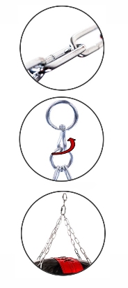 - Łańcuchy nie skręcają się w trakcie treningu – górne mocowanie jest obrotowe.