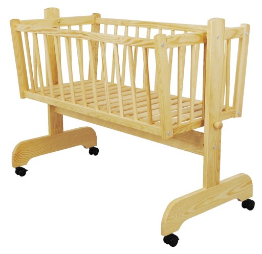 Kołyska dla dzieci wykonana jest z litego drewna sosnowego.