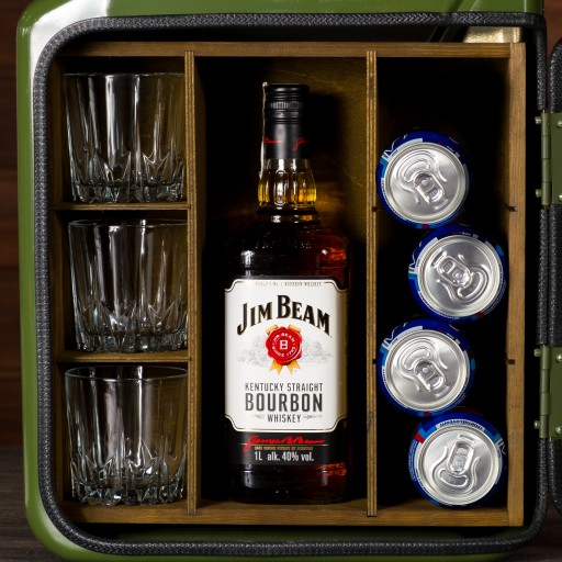 Wewnątrz mieści się butelka i szklanki lub puszki ulubionego napoju. Można włożyć tam też inne prezenty.