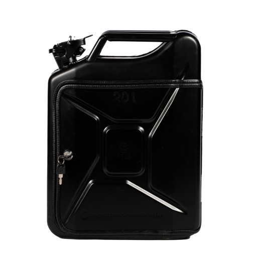 Kanister stalowy jest wysokiej jakości, pomalowany grubą warstwą ciemnozielonego lakieru. Drzwiczki zamykane są na kluczyk (dwa kluczyki w zestawie)