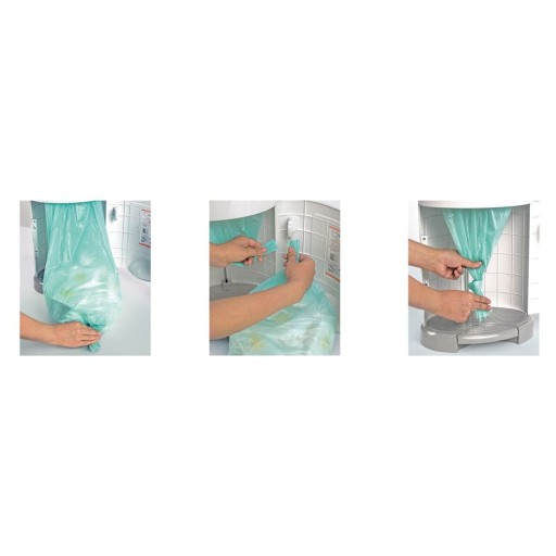 Przy wymianie worka nie ma się bezpośredniego dostępu do pieluch, a tym samym do ich zapachu Przemyślana konstrukcja pozwala na łatwą obsługę oraz komfortowe opróżnianie pojemnika Nie zużywa się większej ilości folii niż jest to konieczne