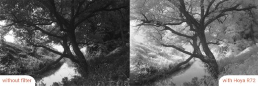Filtr Hoya Infrared R72 stosowany jest do podczerwieni. Pochłania całe światło widzialne, a przepuszcza promieniowanie podczerwone o długości fali powyżej 720nm.