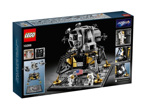 LEGO 10266 Creator Expert Lądownik księżycowy Apollo 11 NASA to klocki, które zostały wyprodukowane w ścisłej współpracy z Agencją NASA. Taka współpraca zaistniała, ponieważ 21 lipca 2019 będziemy mogli świętować pięćdziesięciolecie postawienia stopy na Księżycu przez Neila Armstronga. Z tej okazji powstał kolekcjonerski zestaw klocków LEGO 10266, który stanowi szczegółową replikę modułu księżycowego Apollo 11 Eagle. Wyposażony został z szereg realistycznych funkcji i detali, które sprawiają, że zabawa tym produktem czyni z nas quasi-kosmonautów! Detale, które zostały wykorzystane, by podnieść poziom wiarygodności to m.in. złote nóżki, panele, otwierane klapy, laser oraz drabina.