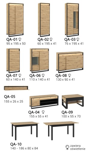 Quant to meble z loftowym charakterem. Spodobają się wszystkim miłośnikom nowoczesnej elegancji. Przestrzenne, zaakcentowane światłem fronty oraz eleganckie czarne ramy sprawiają, że te meble nigdy nie będą tłem, lecz pierwszoplanowym aktorem każdego salonu.