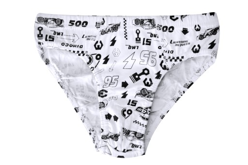 Z przodu majtki posiadają nadruk. Tył: gładki.