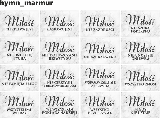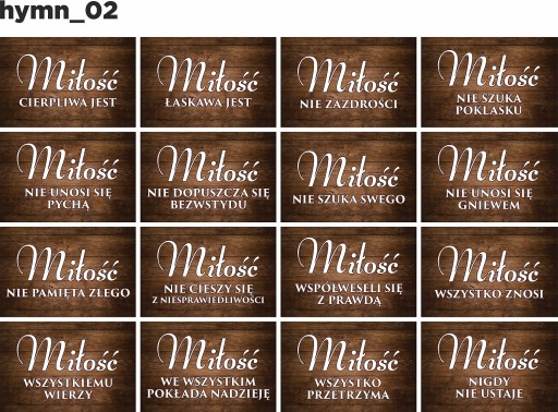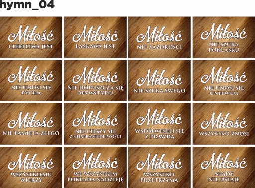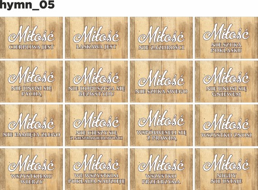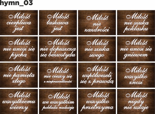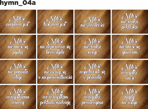 Zestaw 16 tabliczek z hymnem o miłości w rozmiarze 20x30cm