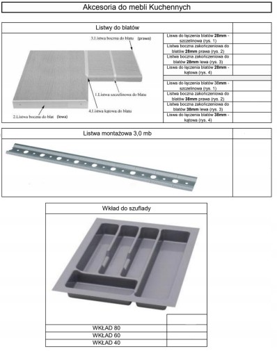 * Blat kuchenny 28mm / 38mm - należy dokupić osobno.