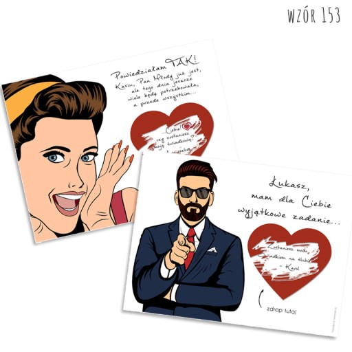 Zdrapka w kształcie serca - czerwona. Tył kartek biały.