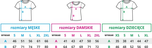 UWAGA! Prosimy dokładnie zapoznać się z tabelą rozmiarową (dostępna w zakładce niżej), gdyż rozmiary naszych koszulek delikatnie różnią się od typowych "sieciówek". Tolerancja podanych wymiarów wynosi +/- 2,5cm.
