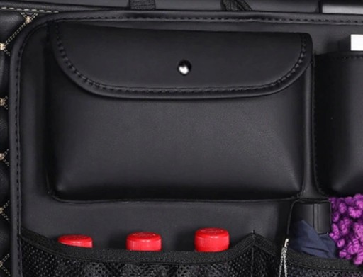 Organizer wykonany jest z wysokiej jakości materiału (EKO-SKÓRY) odpornego na zabrudzenia i łatwego w czyszczeniu. Posiada szereg praktycznych kieszeni, w górnej części i pojemne kieszenie siatkowe w dolnej części organizera.