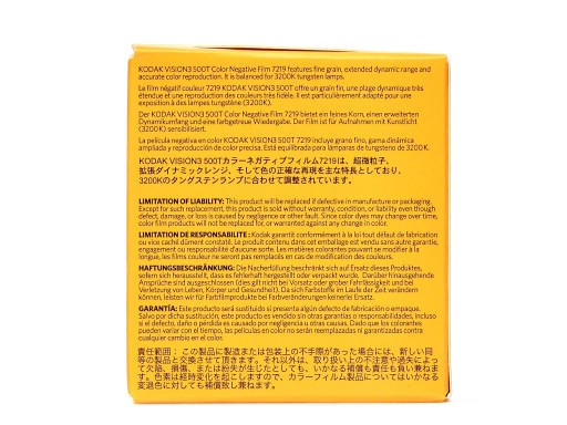 Opis artykułu: Barwny film negatywowy Kodak Vision3 500T w kasecie, format Super 8, o czułości 500 ASA dla światła sztucznego (przy temperaturze 3000 K) i 320 ASA dla światła dziennego - z filtrem Wratten 85 - temperatura 5500 K. Film nadaje się przede wszystkim do kręceniu filmów w świetle zastanym żarowym, mieszanym oraz do średnich i złych warunków atmosferycznych z użyciem filtra podwyższającego temperaturę barwową. Jest dość tolerancyjny na naświetlenie - przede wszystkim prześwietlenie o ok. 4 stopnie przesłony i niedoświetlenie o ok. 2 stopnie - trudno to określić na podstawie zdjęcia w reklamówce... Długość taśmy 15 metrów starcza na ok. 3,5 minuty filmu przy prędkości naświetlania 16/18 klatek na sekundę. Z powodu wysokiej jakości materiału Vision3 można naświetlać na 1000 ASA - oczywiście należy o tym poinformować laboratorium gdzie wywoływany jest film. Kodak Vision3 jest filmem negatywowym a nie diapozytywem jak np. Kodak 100D czy Wittner 200D. Po wywołaniu filmu w procesie ECN2 aby go użyć należy zeskanować i obrobić lub zduplikować na materiale do tego przeznaczonym. W cenę NIE jest wliczone wywołanie - film można wysłać w celu wywołania na adres naszej firmy. Film przeznaczony jest do wszystkich kamer systemu Super 8 mm. Film NIE nadaje się do kamer systemu 2x8 Super lub 2x8 Standard. W systemie S8 kasetę można wyjąć w dowolnym momencie i zmienić na inną - co na pewno jest przewagą nad systemami 2x8 mm. Jednak koszty filmu i wywołania są jego istotną wadą, systemy 2x8 mm. czarno-białe są dużo tańsze w przeliczeniu na minutę filmu.