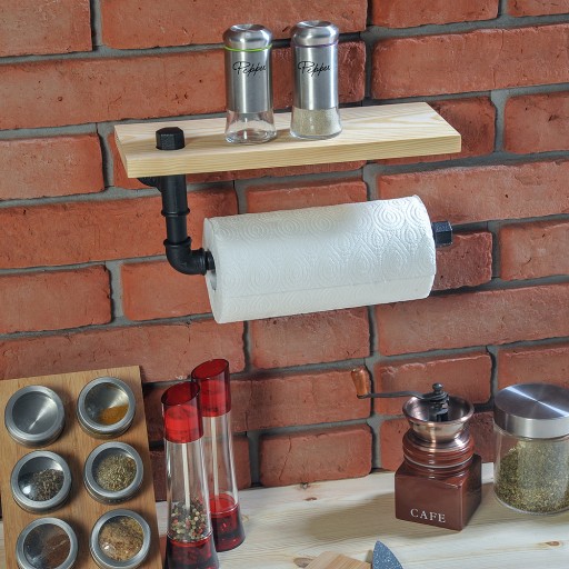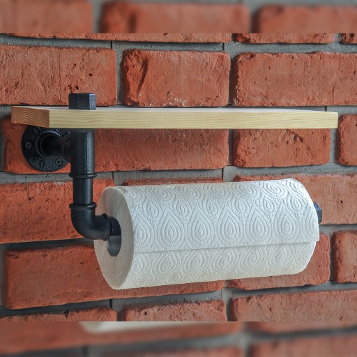 Uchwyt na ręczniki papierowe z drewnianą półeczką