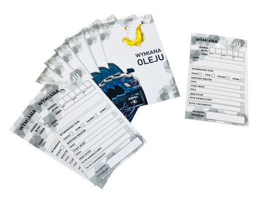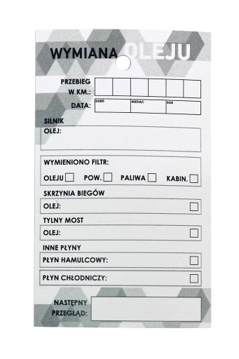 miejsce na przebieg auta, datę wymiany, filtry jakie wymieniono oraz na specyfikację oleju i płynu hamulcowego czy chłodniczego.