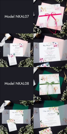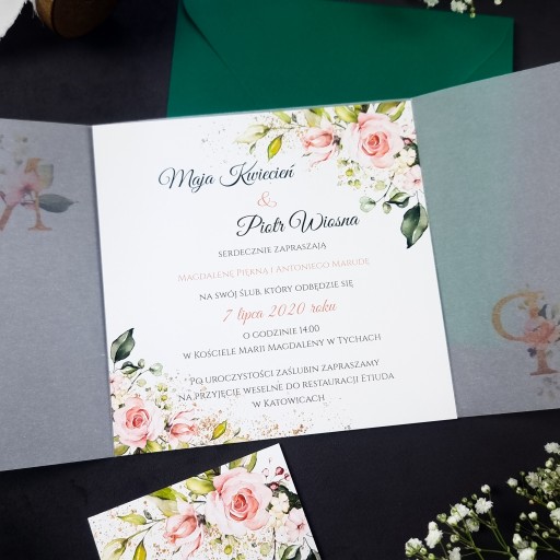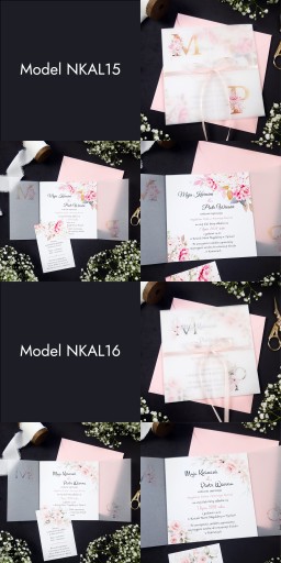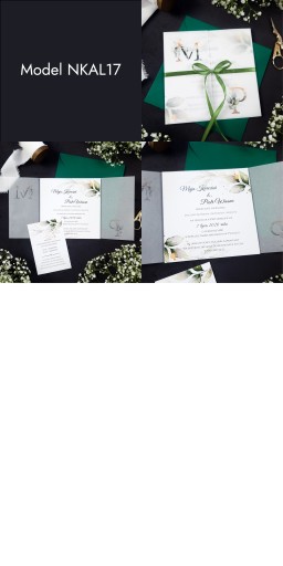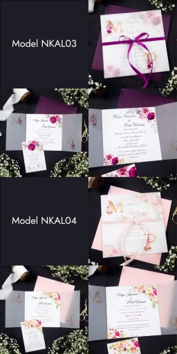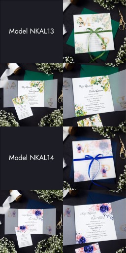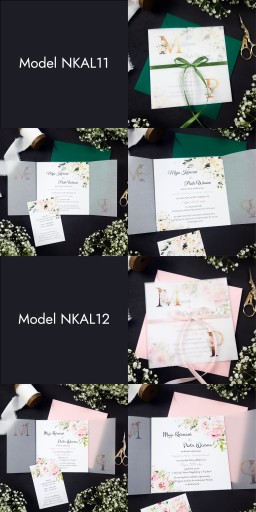 - Pewność że do zaproszeń dokupią Państwo inne elementy papeterii ślubnej (winietki, zawieszki, menu, nr stołów, magnesy, księgi gości, pudełka na koperty itp.) w motywie graficznym spójnym z zaproszeniem