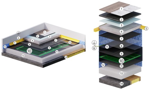 1. Ogrzewanie podłogowe pod panelem laminowanym min. 6 mm z podkładem izolacyjnym: