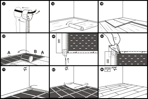 Schemat montażu folii grzewczej Heat Decor z serii HD-G pod panelami