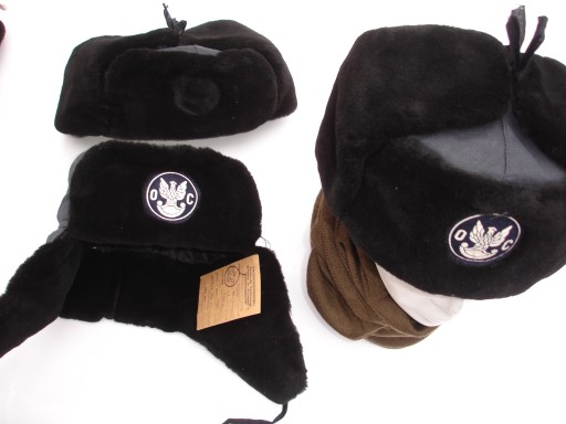 Nowa, oryginalna czapka zimowa tzw. papacha lub uszatka. Była ona na wyposażeniu służb Obrony Cywilnej w latach osiemdziesiątych.