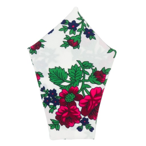 Ta niezwykła poszetka została uszyta z materiału zdobionego charakterystycznym ludowym motywem kwiatowym. Jako wyrazisty dodatek świetnie sprawdzi się w połączeniu ze stonowaną koszulą lub garniturem. Poszetka uszyta jest z najwyższą starannością i dbałością o szczegóły, obszyta delikatną drobną mereżką. Zamiast gorszej jakościowo bawełny, której kolory szybko blakną, poszetka została wykonany z wiskozy o ostrych i wyrazistych kolorach.