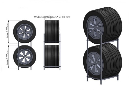 Przystosowany na 4 opony o szerokości do 260mm ( max 19 cali).