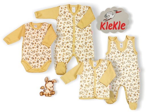 Wyprawka składa się z BODY z długim rękawem, PAJACYKA, ŚPIOSZKÓW z KAFTANIKIEM stworzonych z myślą o jak największej wygodzie noszenia dla niemowląt.