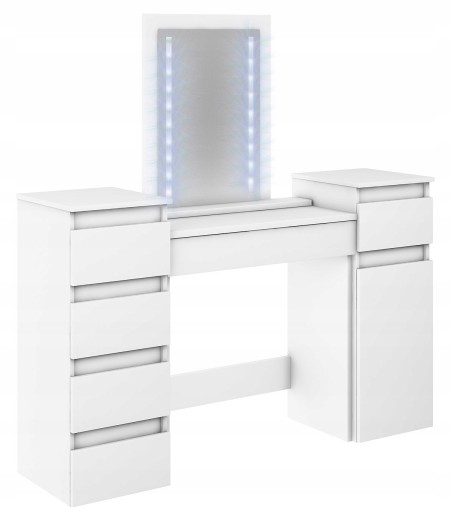 Dokupując moduł w czterema szufladami lub szufladą i szafką stworzysz biurko, dokupując jeszcze lustro led stworzysz toaletkę.
