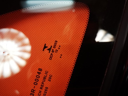 Oryginalna szyba karoseryjna, wraz z uszczelką, strona prawa, rocznik na szybie 2012
