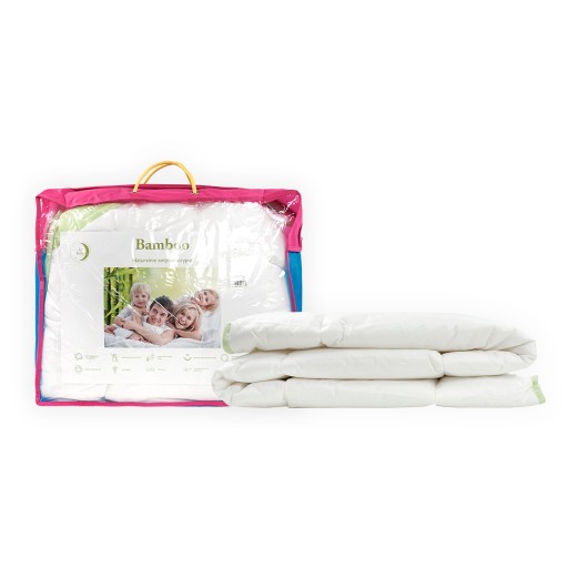 Wypełnienie kołdry to włóknina bambusowa, cechuje się ona wysoką izolacją cieplną. Równomiernie rozgrzewają nasze ciało oraz doskonale odprowadzają wilgoć przepuszczając powietrze. Włókno celulozowe pozyskane ze zmiażdżonych łodyg bambusa pochodzi z wolnych od chemii i nawozów sztucznych plantacji