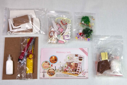 Miniaturowy domek DIY to świetna zabawa na długie godziny. W pudełku znajdują się wszystkie elementy potrzebne do złożenia domku samodzielnie. Tkaniny, kawałki drewna, druciki, koraliki to wszystko i wiele więcej zostało starannie zapakowane i posegregowane w oznakowane paczki. Dołączona instrukcja w języku polskim ułatwi wyszukanie i łączenie elementów, dzięki niej nikt nie poczuje się zagubiony wśród dużej ilości części.