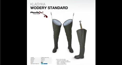 Wodery sprawdzone w różnych warunkach, wygodne i wytrzymałe, pozwalające przebywać cały dzień w wodzie bez obawy przecieknięcia. Produkt wykonany z tkaniny Plavitex która w dotyku ma podobną strukturę do gumy, są one jednak bardziej elastyczne niż guma. Kalosze użyte do tego produktu są elastyczne i dopasowują się do stopy. Waga produktu to w zależności od rozmiaru od 2,5 do 3,5kg Produkt Polecany przez wędkarzy i gospodarstwa Rybackie. Na tej aukcji sprzedajemy kolor zielony ale w naszej ofercie znajdziecie Państwo również kolor czarny, umieszczony na innych naszych aukcjach.