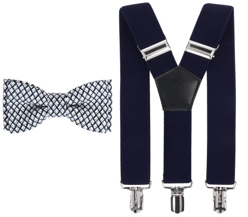 KOLOR: szelki granatowe i muszka w granatowo białe wzory