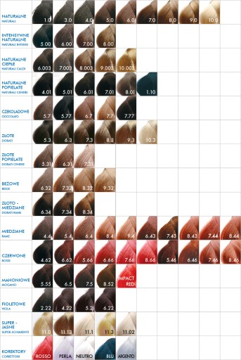5.01 Naturalny Jasny Brąz Popielaty 6.46 Ciemny Blond Miedziano Czerwony