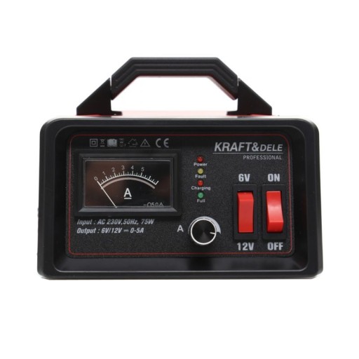 Prostownik KRAFT&DELE o symbolu KD1288 to niezawodne urządzenie służące do ładowania akumulatorów o pojemności od 6 Ah do 75 Ah - idealny do pobudzania mocno rozładowanych akumulatorów. Prostownik wyposażony został w wyświetlacz trybu ładowania, który zabezpiecza urządzenie przed uszkodzeniem. Prosta i solidna budowa zapewnia niezawodność i długowieczność urządzenia. W zestawie wraz z urządzeniem znajdują się przewody z końcówkami typu "krokodylki" oraz przewód zasilający.
