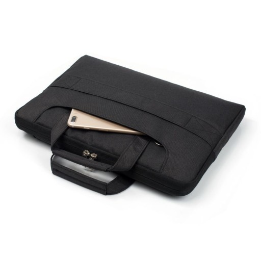 Etui wykonane jest z wytrzymałej i odpornej na ścieranie denimowej tkaniny, odpornej na wilgoć, dobrze chroni elektronikę przed uszkodzeniem. Podwójny zamek błyskawiczny umożliwia łatwe otwieranie i zamykanie. Etui, posiada dodatkową przednią kieszeń w której bez problemu schowasz telefon czy portfel oraz drobne akcesoria. Torba jest wyposażona w wygodne chowane rączki, pozwalające na jej przenoszenie. Dodatkowa rączka pozwoli na przypięcie do walizki z uchwytem teleskopowym dzięki czemu można ograniczyć liczbę noszonego bagażu. Do torby dołączony jest pasek na ramię z solidnymi klamrami. Wodoodporna tkanina, odporna na wstrząsy pianka, antystatyczne puszyste wnętrze, miękka wyściółka zmniejszają tarcie i dbają o twój laptop. Wnętrze pokrowca wyłożone jest grubą warstwą miękkiego materiału, który utrzymuje, a zarazem chroni urządzenie przed uszkodzeniem.