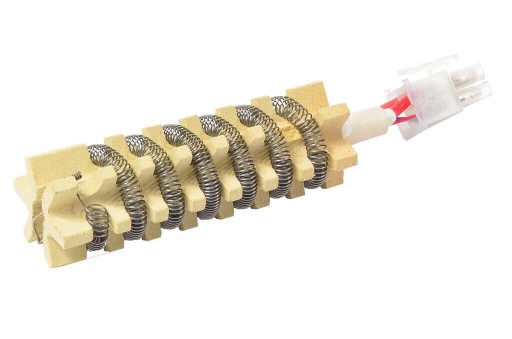 Spirala grzejna wykonana z grubego drutu owiniętym na ceramicznym stelażu.