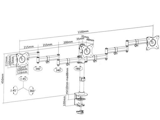 Uchwyt umożliwia zamontowanie 3 oddzielnych monitorów w podanym standardzie VESA.