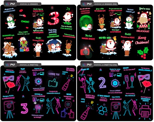 + 13 zestawów animacji z polskim i angielskim lektorem (uniwersalna, weselne, dziecięca, party, halloween, mikołajkowo-świąteczna, party-noworoczna)