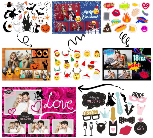 - wybór pomiędzy: tłami z efektem "green screen" lub klasycznymi ramkami
